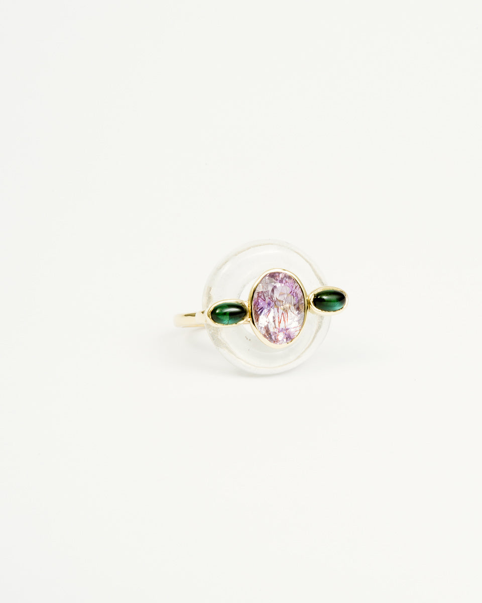 Cabochon Green Tourmalines and Super Seven Rutile Quartz